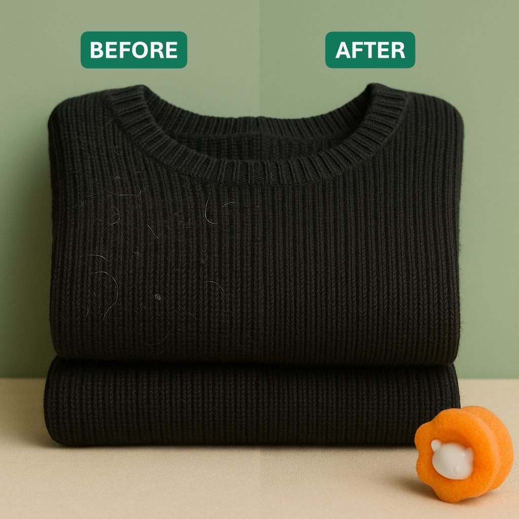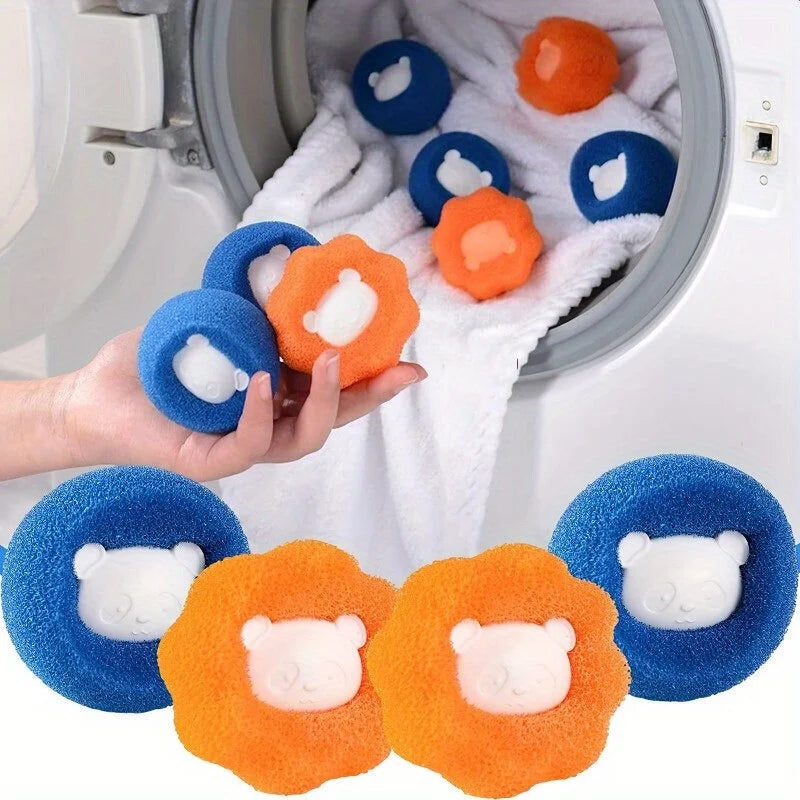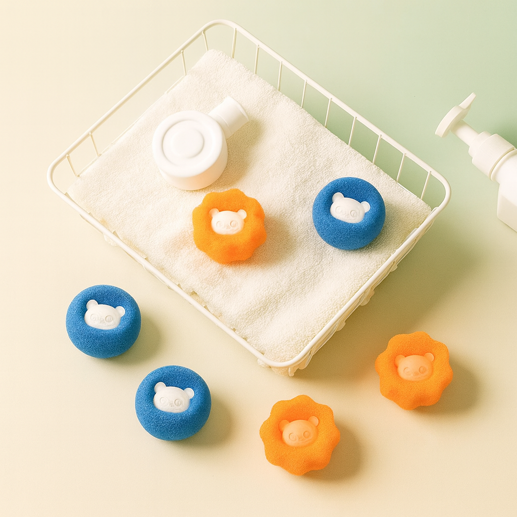 Reusable foam balls that attract pet hair, lint, and loose fibers during the wash—so less sticks to clothes.